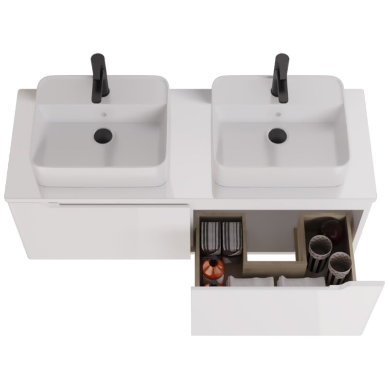 Тумба Dreja W 125 см подвесная для ум. Гармония 125 см или стекл столешницы W 2 ящика белый глянец (99.9400)