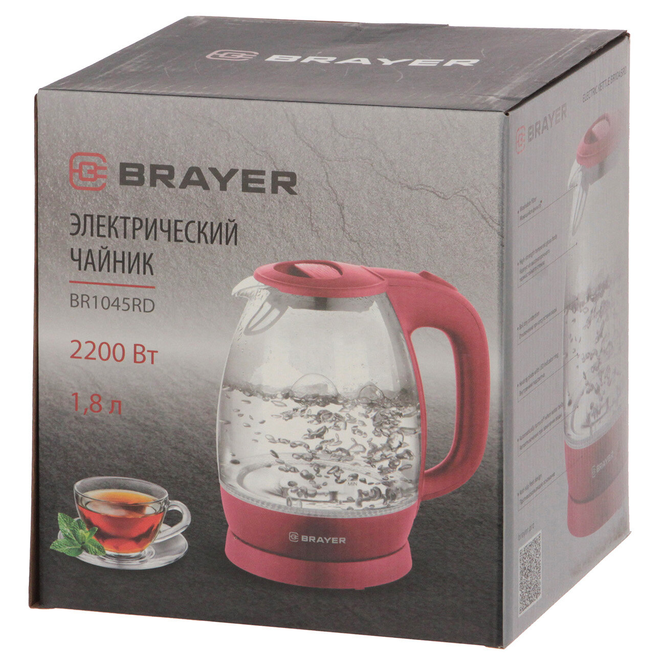 Чайник электрический мощность 2200 Вт, 1.8 л BR1045RD