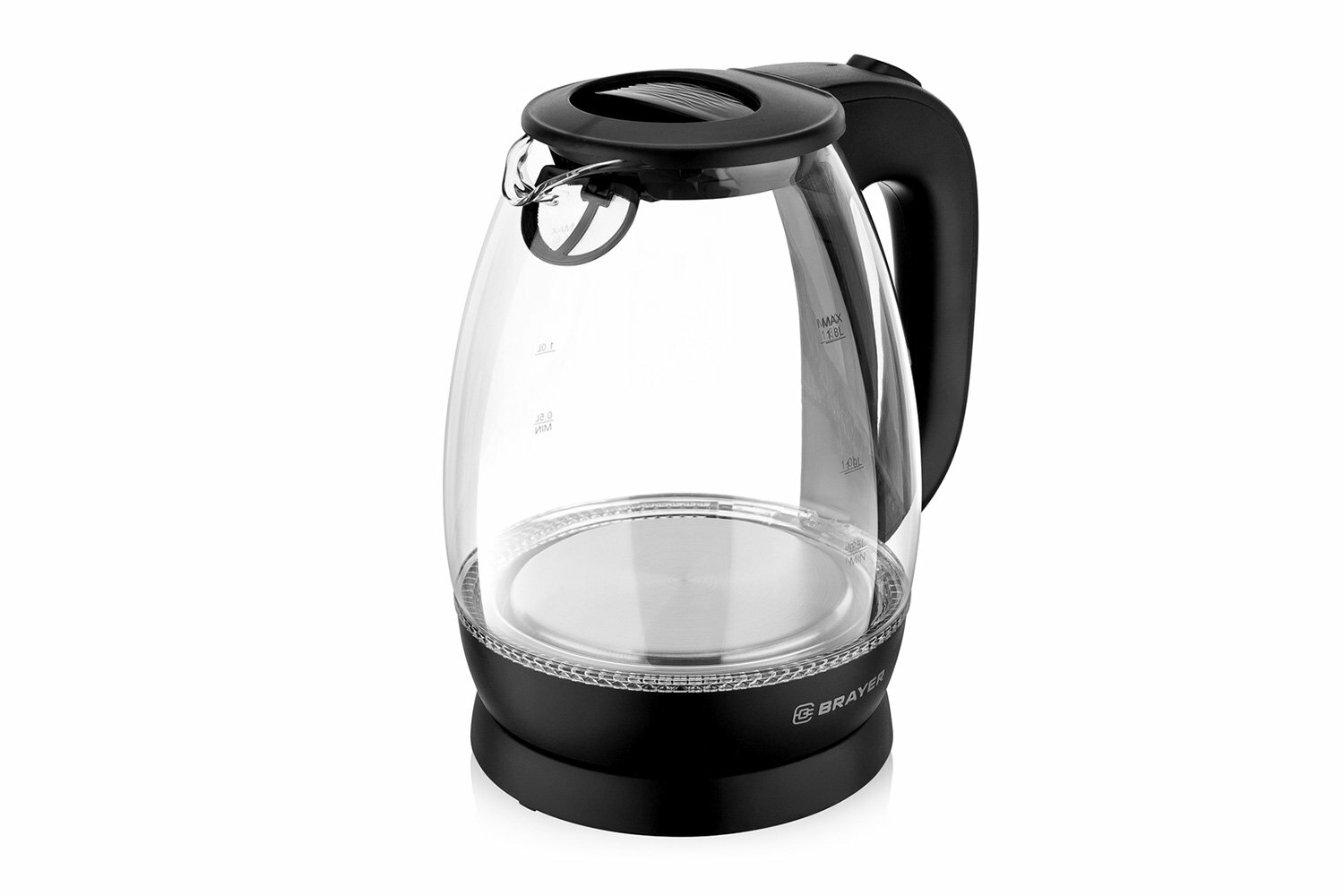Купить Чайник BRAYER BR1026, 1,8 л, 2200 Вт, закрытый нагревательный элемент, стекло, черный