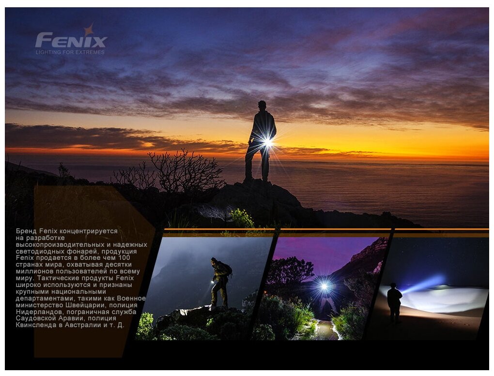 | Подробная комплектация | фонарь, аккумулятор Fenix ARB-L18-3400, кабель USB тип A - USB тип C, съёмная клипса (на фонаре), шнурок на руку, запасное уплотнительное кольцо, инструкция, гарантийная карточка |