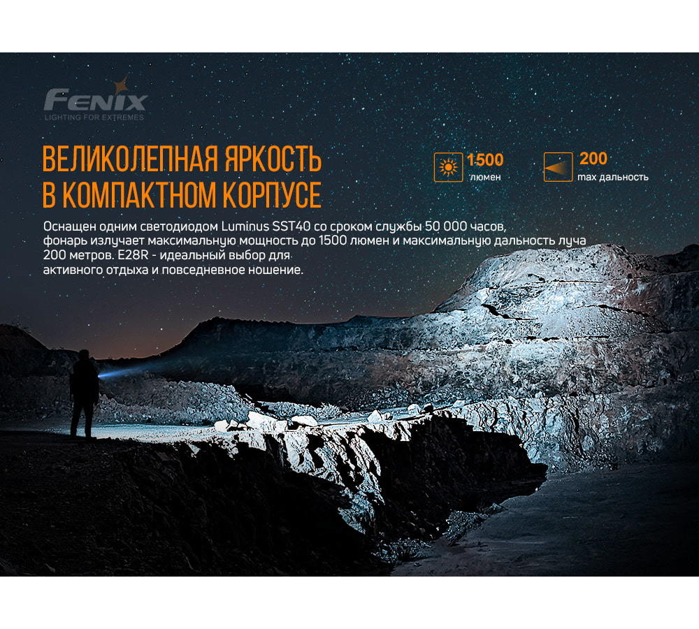 Fenix E28R (LUMINUS SST40, ANSI 1500 лм, 18650/CR123A)