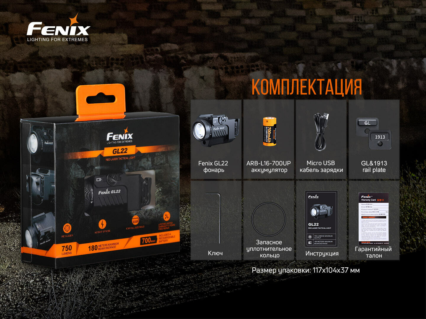 Пистолетный фонарь Fenix GL22 c красным лазером интересное: