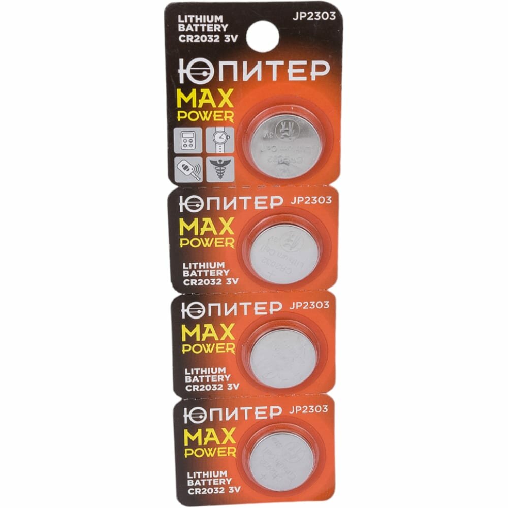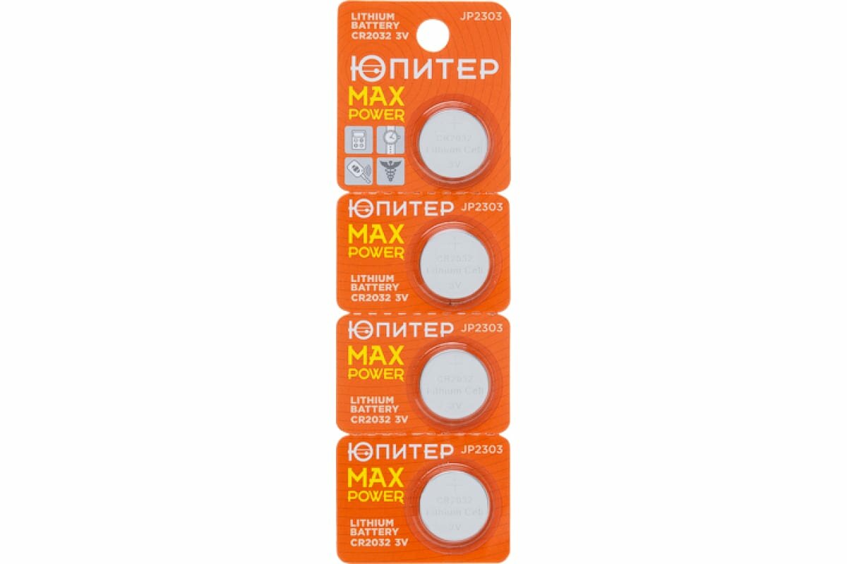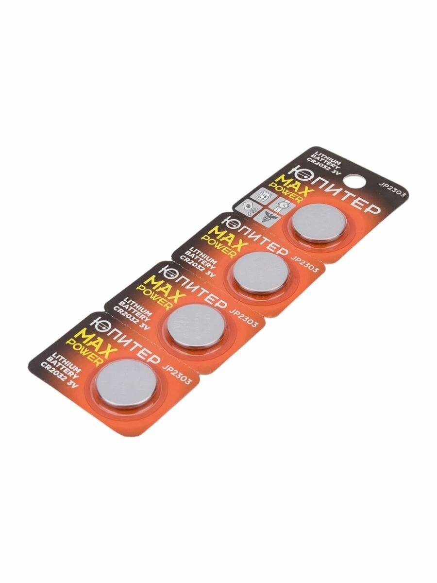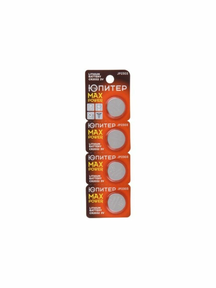 Батарейка CR2032 ЮПИТЕР 3V, литиевая, 4 штуки, блистер, (JP2303)