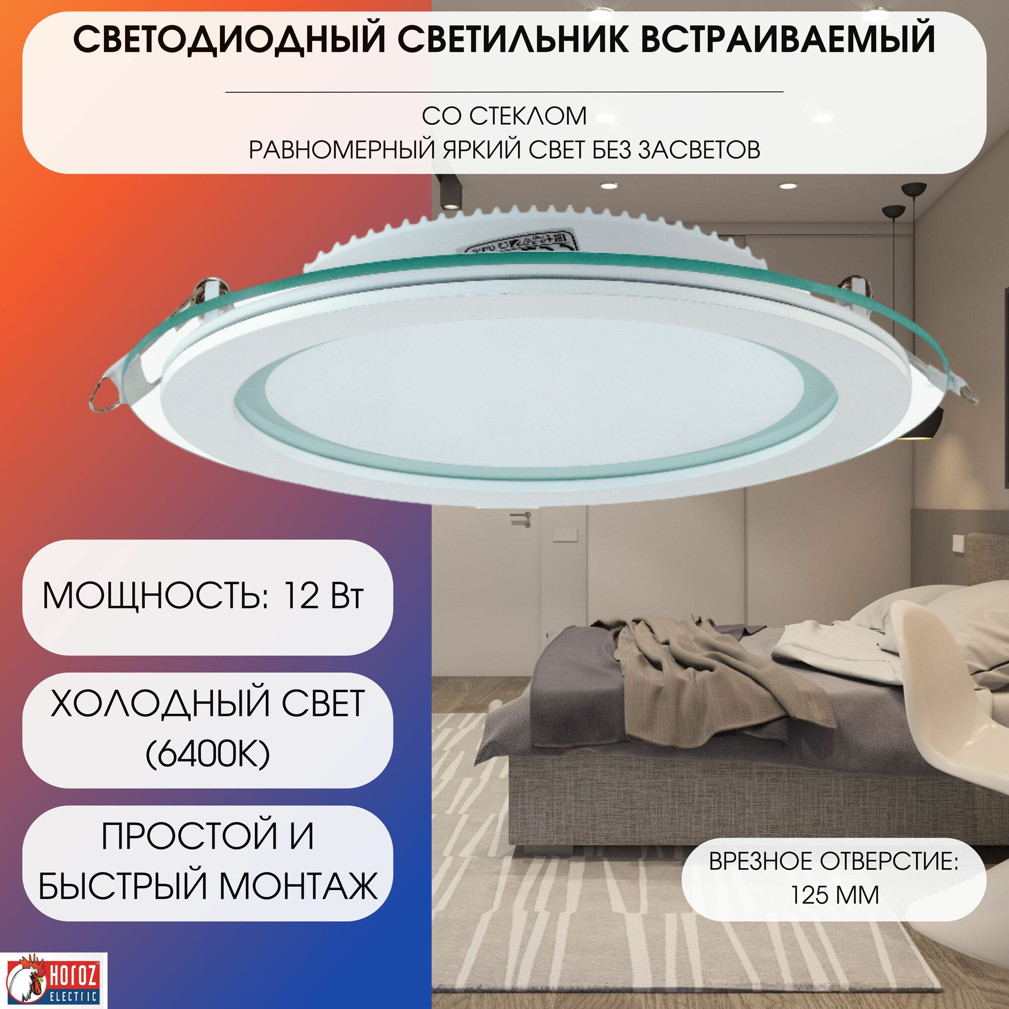 Horoz светодиодный белый светильник встраиваемый со стеклом потолочный направленного света, холодный белый свет, HL689LG 15W, 6400K, 100-265V CLARA-15 016-016-0015