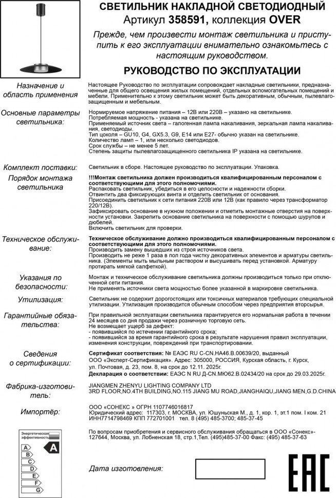 Подвесной светильник светодиодный Over 358591 (Novotech)