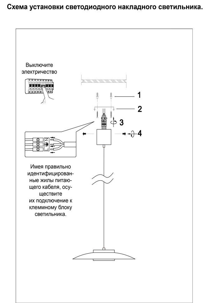 Светильник накладной светодиодный, провод 2м Novotech 358591 PILZ