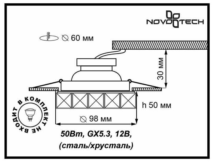 370168 SPOT NT15 302 хром/хрусталь Встраиваемый светильник IP20 GX5.3 50W 12V NEVIERA