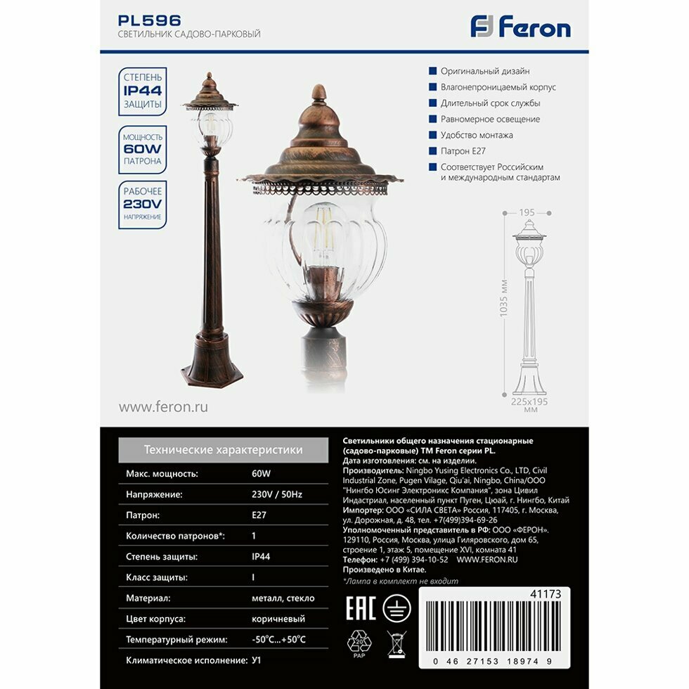 FERON Светильник садово-парковый, 60W 230V IP44 коричневый, PL595 41172