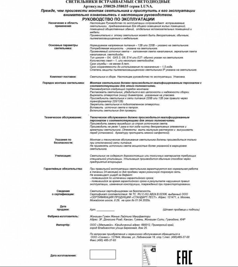 | Комплектация | Встраиваемые светильники Novotech 358035 |