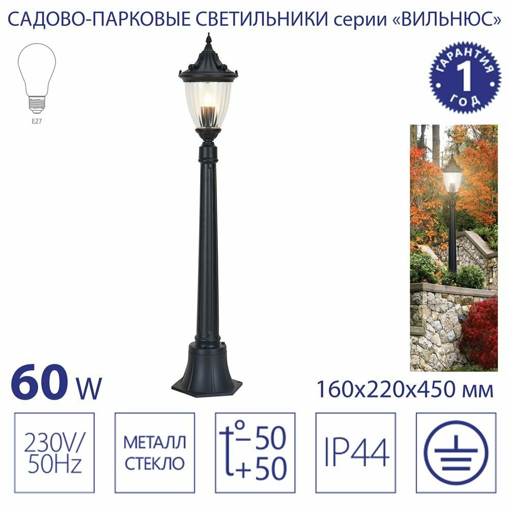 Светильник садово-парковый, 60W 230V IP44 черный, PL586
