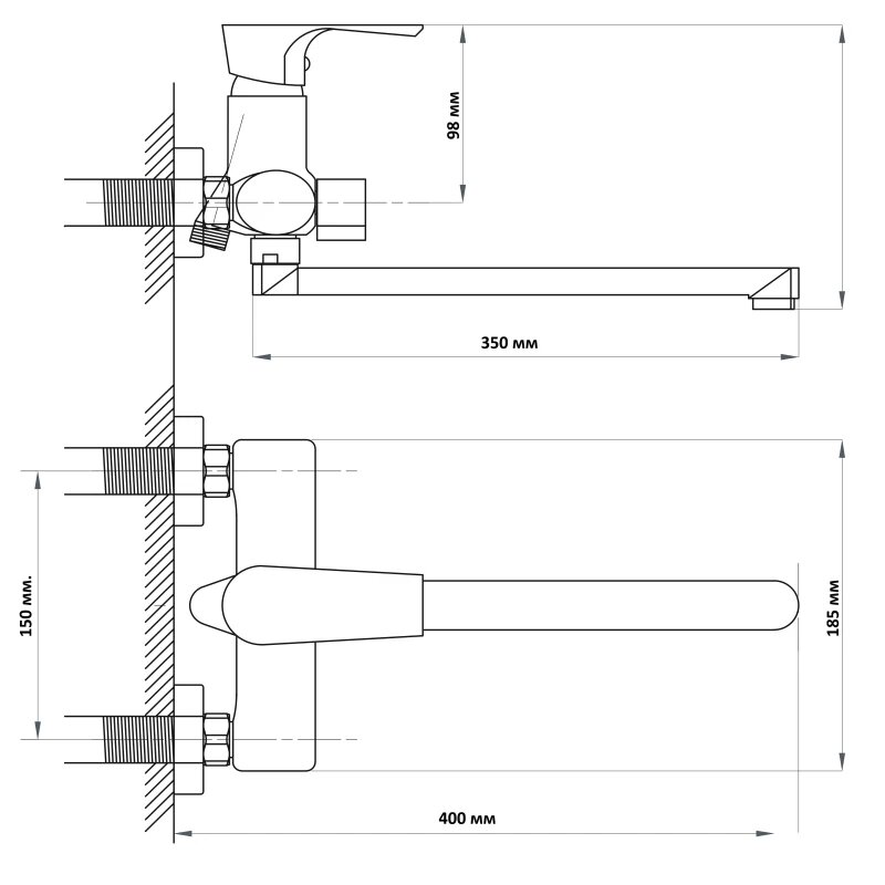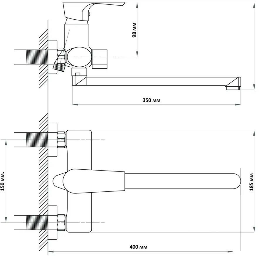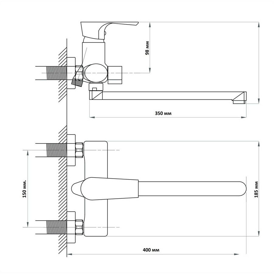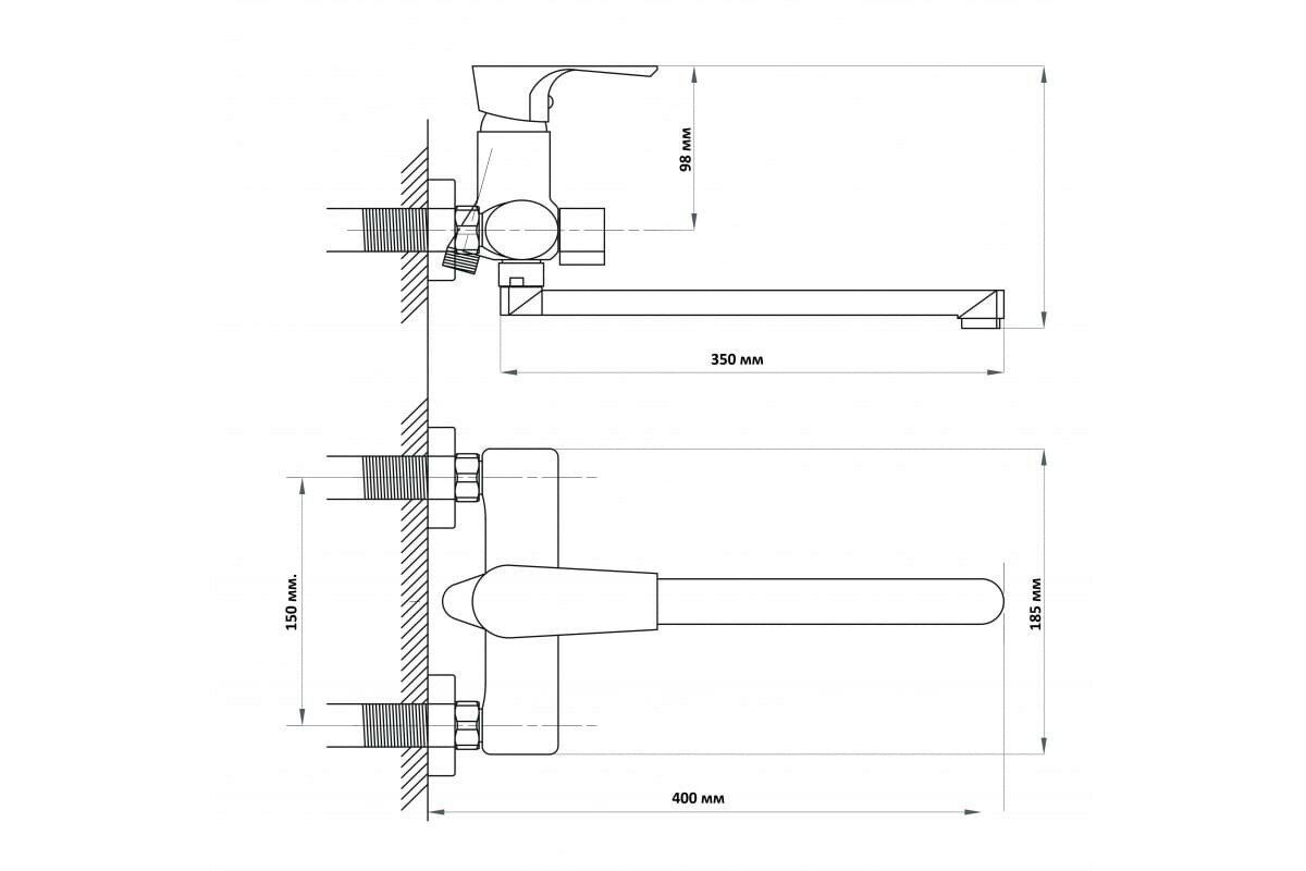 Смеситель для ванны и умывальника 35к ПСМ-400-2 400 тип см-вуорншла, эксцентрики "евро", хром