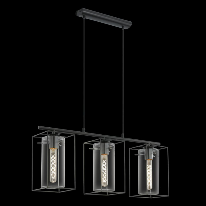 Подвес LONCINO, 3x60W (E27), L745, H1100, сталь, черный/дымчатое стекло