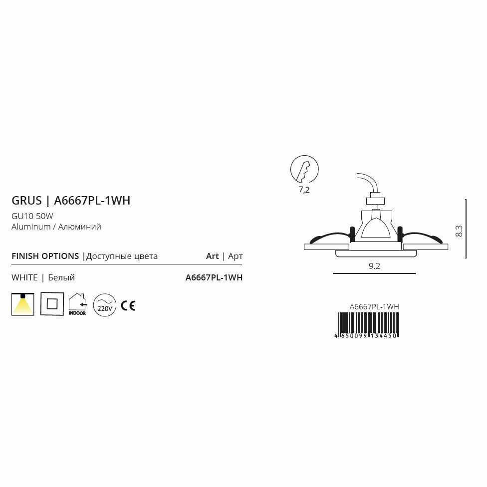 Светильник точечный Arte Grus A6667PL-1WH