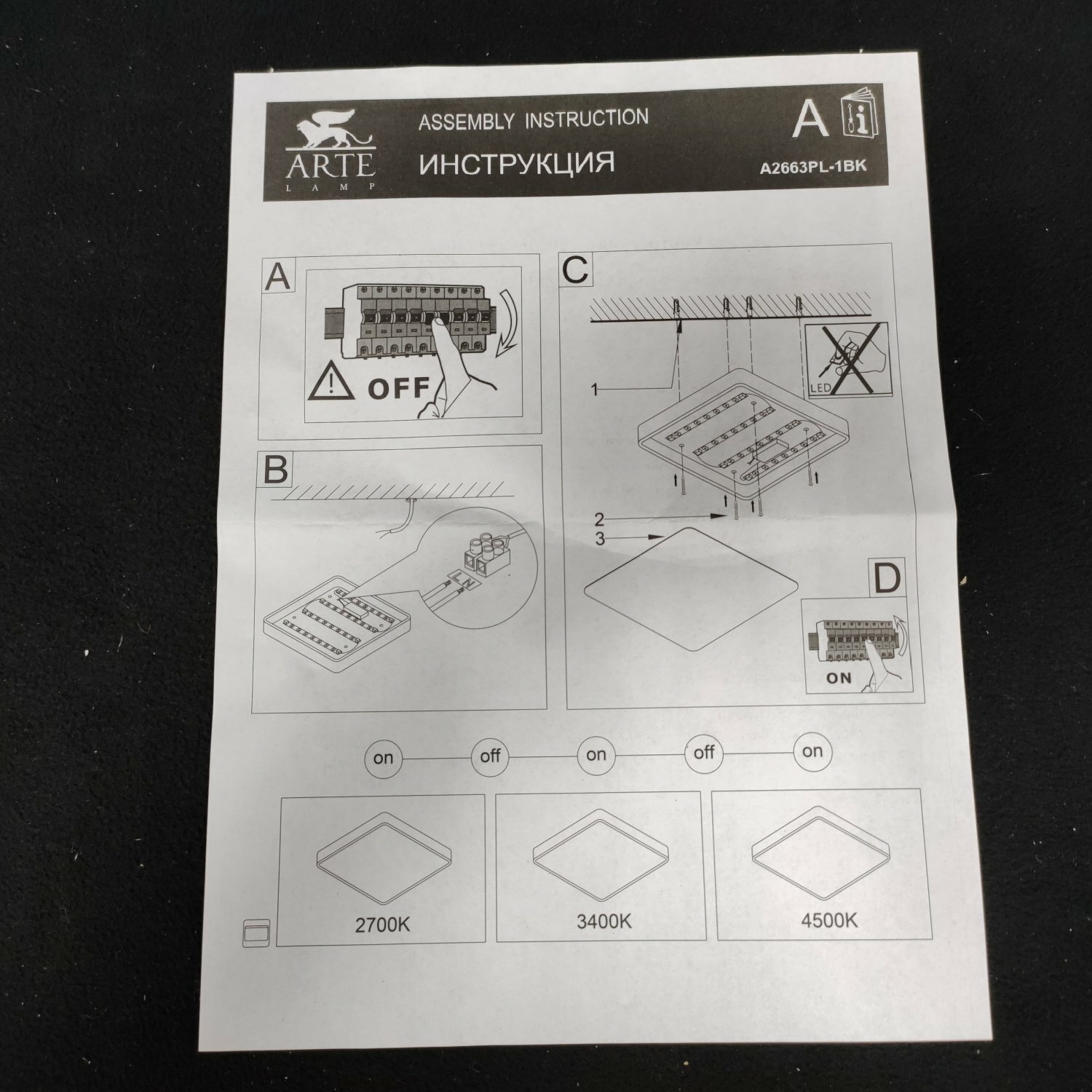 ARTE Lamp #ARTE LAMP A2663PL-1BK светильник потолочный