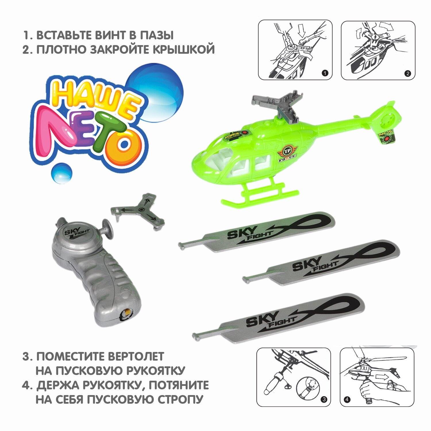 Вертолёт с запускающим устройством Bondibon "властелин неба", светло-зеленый с серебристыми лопастями Наше Лето, игрушка, подарок ребенку