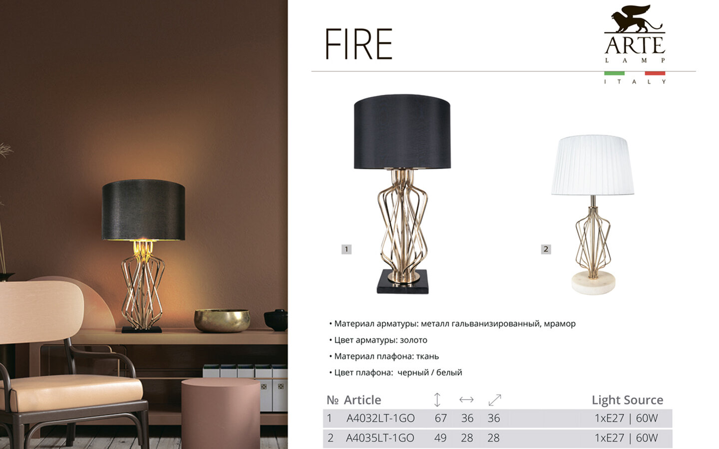 Настольная лампа ArteLamp FIRE A4035LT-1GO