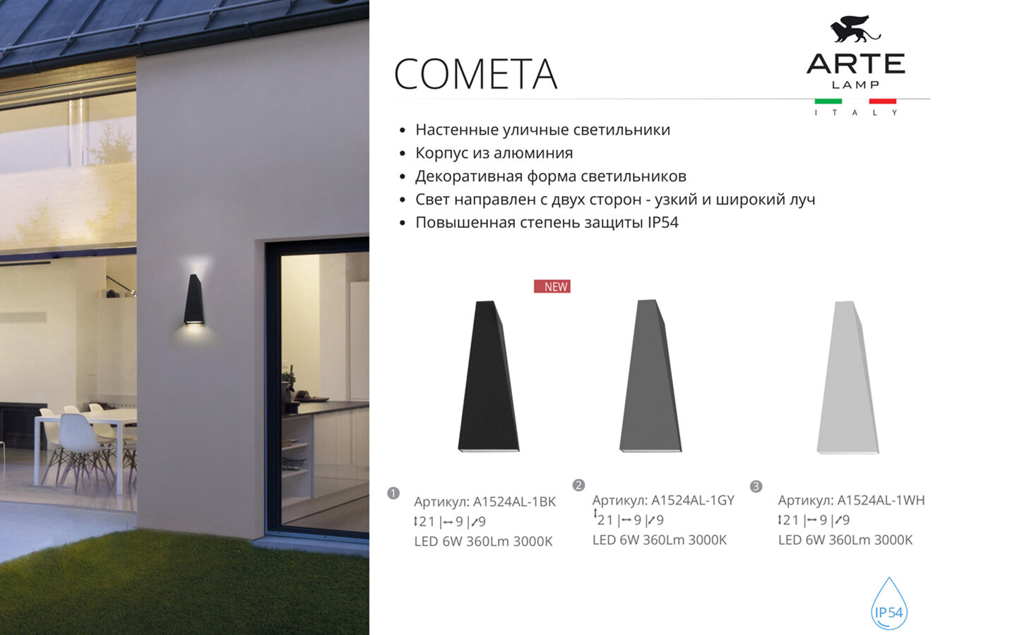 СохранитьArte Lamp Уличный настенный светодиодный светильник Arte Lamp Cometa A1524AL-1GY интересное: