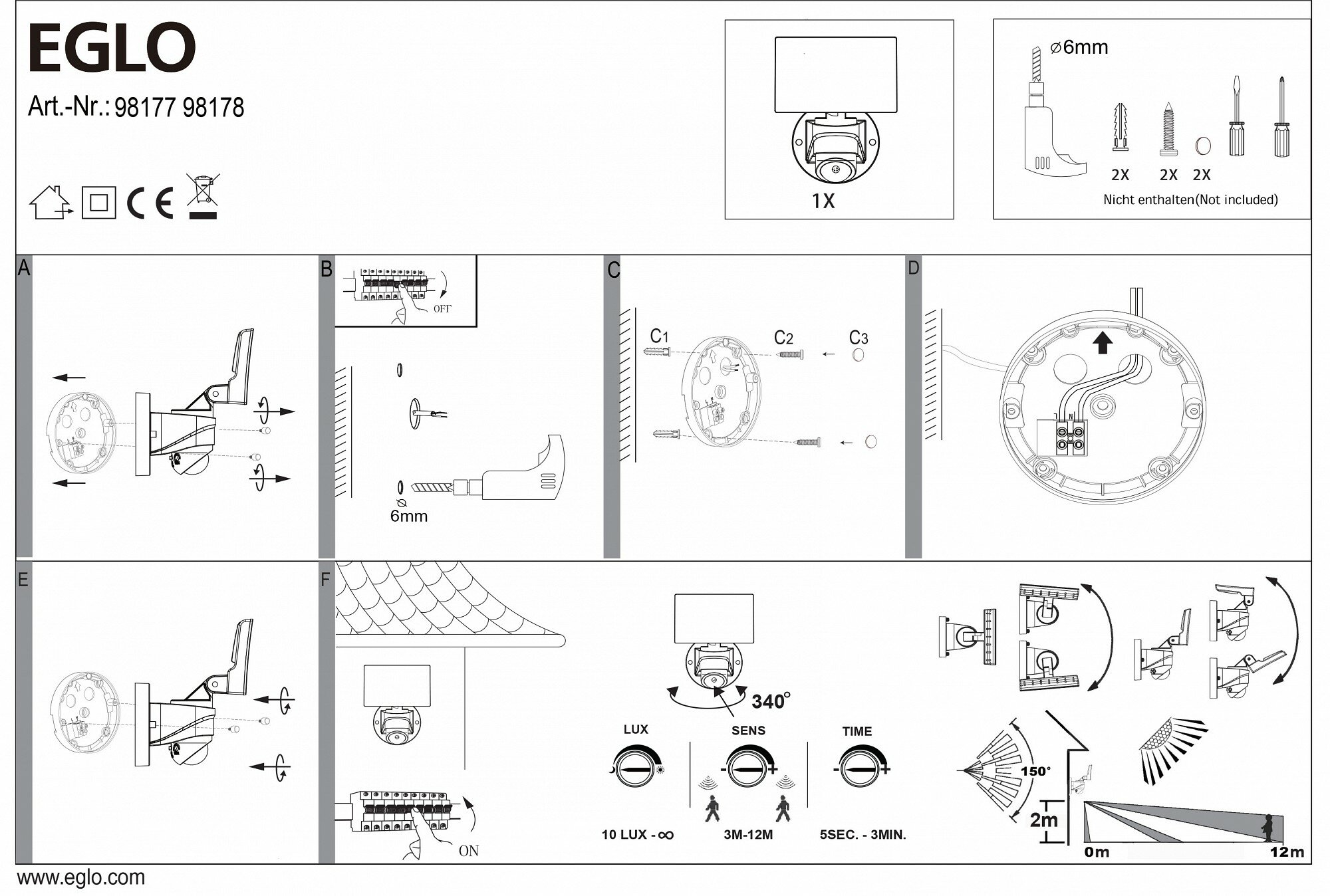 98178 Светильник уличный настенный с датчиком движения EGLO PAGINO
