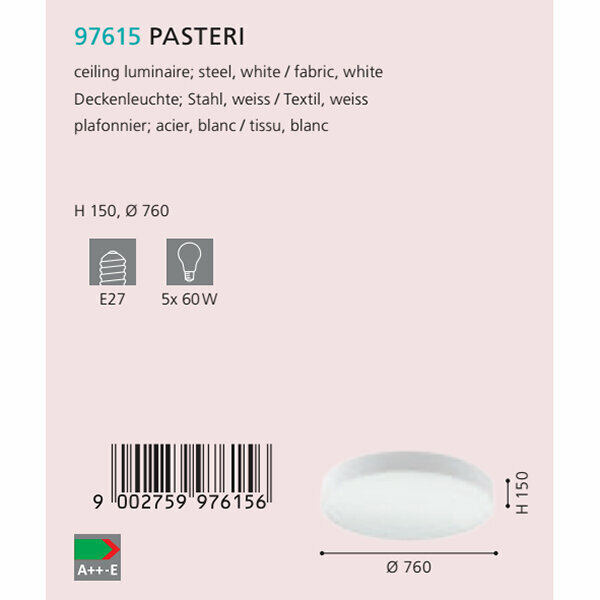 Ниже Вы можете прочитать отзывы на Eglo Потолочный светильник Eglo Pasteri 97615, ознакомится с подробными характеристиками, посмотреть интересные обзоры и фотографии на Eglo Потолочный светильник Eglo Pasteri 97615.