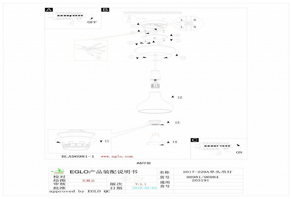 Светильник подвесной EGLO 96981
