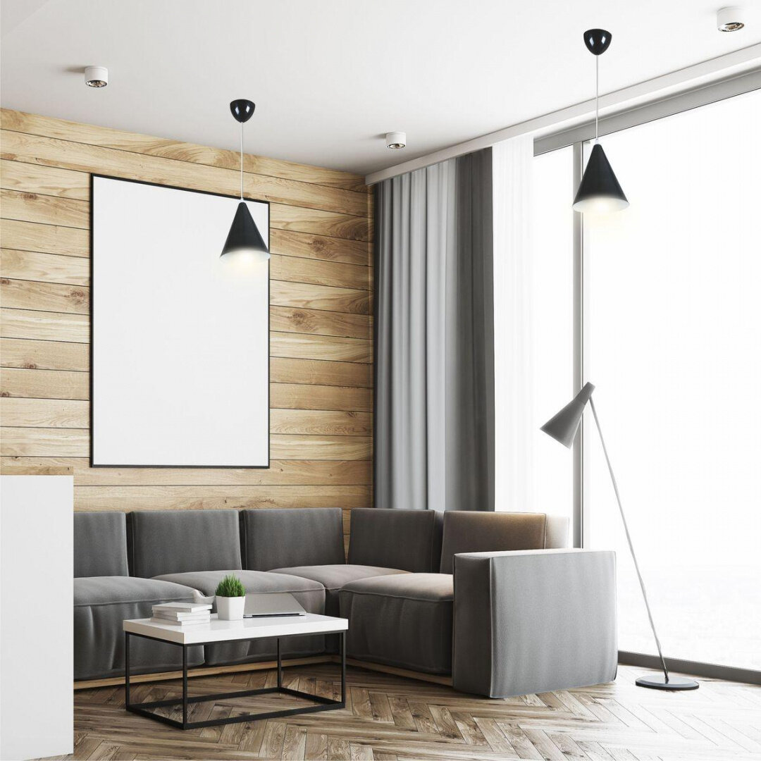 Декоративный светильник-подвес Ляфамий с креплением на планку без ламп / Подвесной металлический плафон в форме конуса с направлением света вниз и прозрачным шнуром 45 см / Люстра потолочная с цоколем Е14 / 40Вт / IP20 / 220В / черный