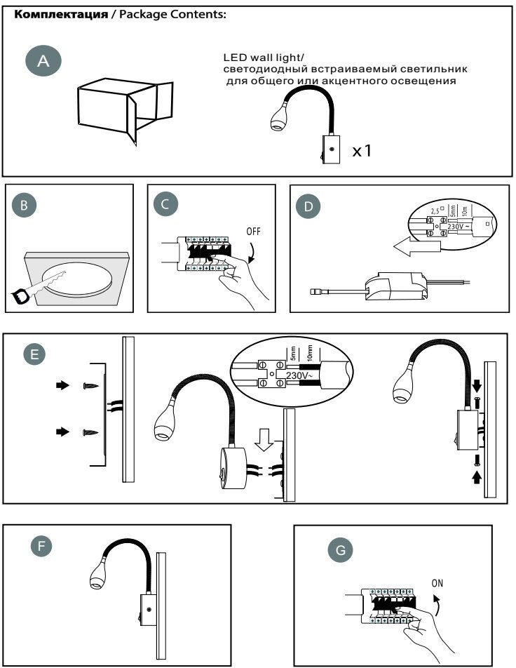 | Особенности | лампы в комплекте / с выключателем |