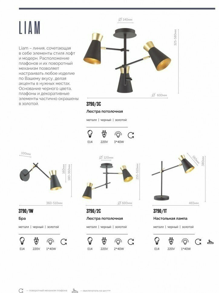 3790/1T LOFTI LN19 228 матовый черный, золотой Настольная лампа E14 1*40W 220V LIAM