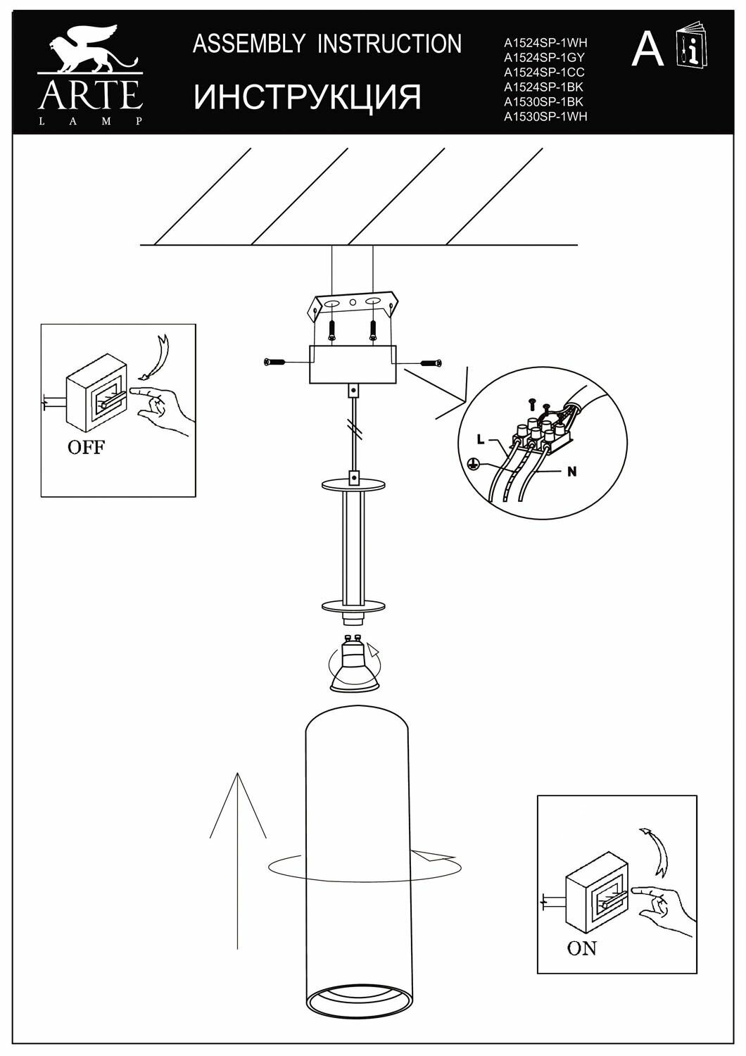 Подвесной светильник ARTE Lamp A1524SP-1WH