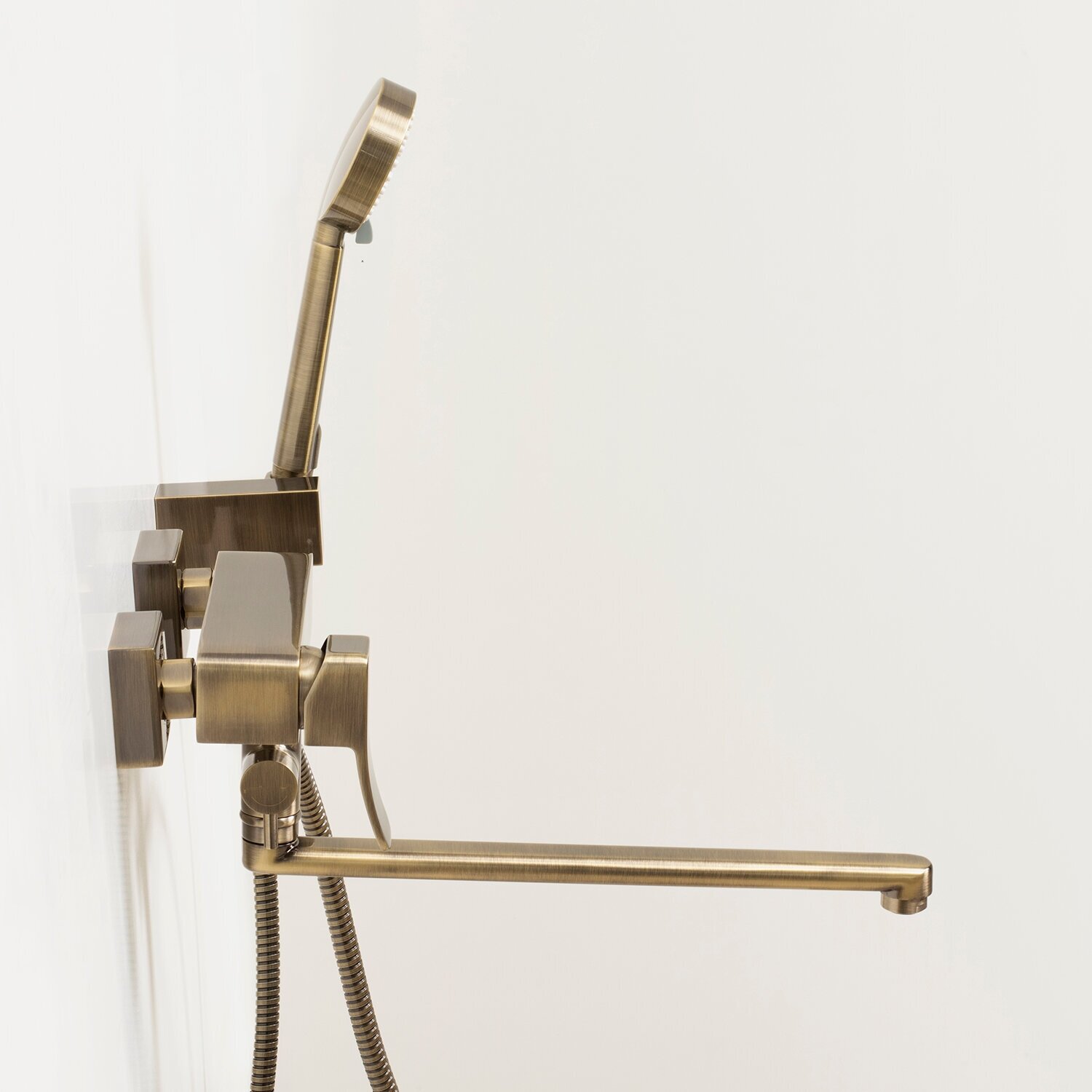 Смеситель для ванны с лейкой и длинным изливом, светлая бронза, WasserKRAFT Exter 1602L