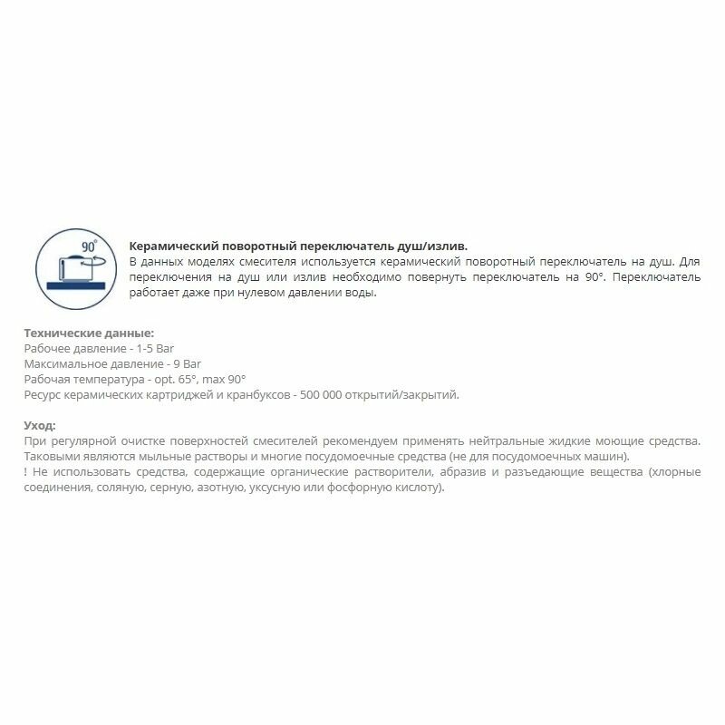 | Минусы: | Сначала рычаг переключения кран-душ туго переключался, приходилось постараться