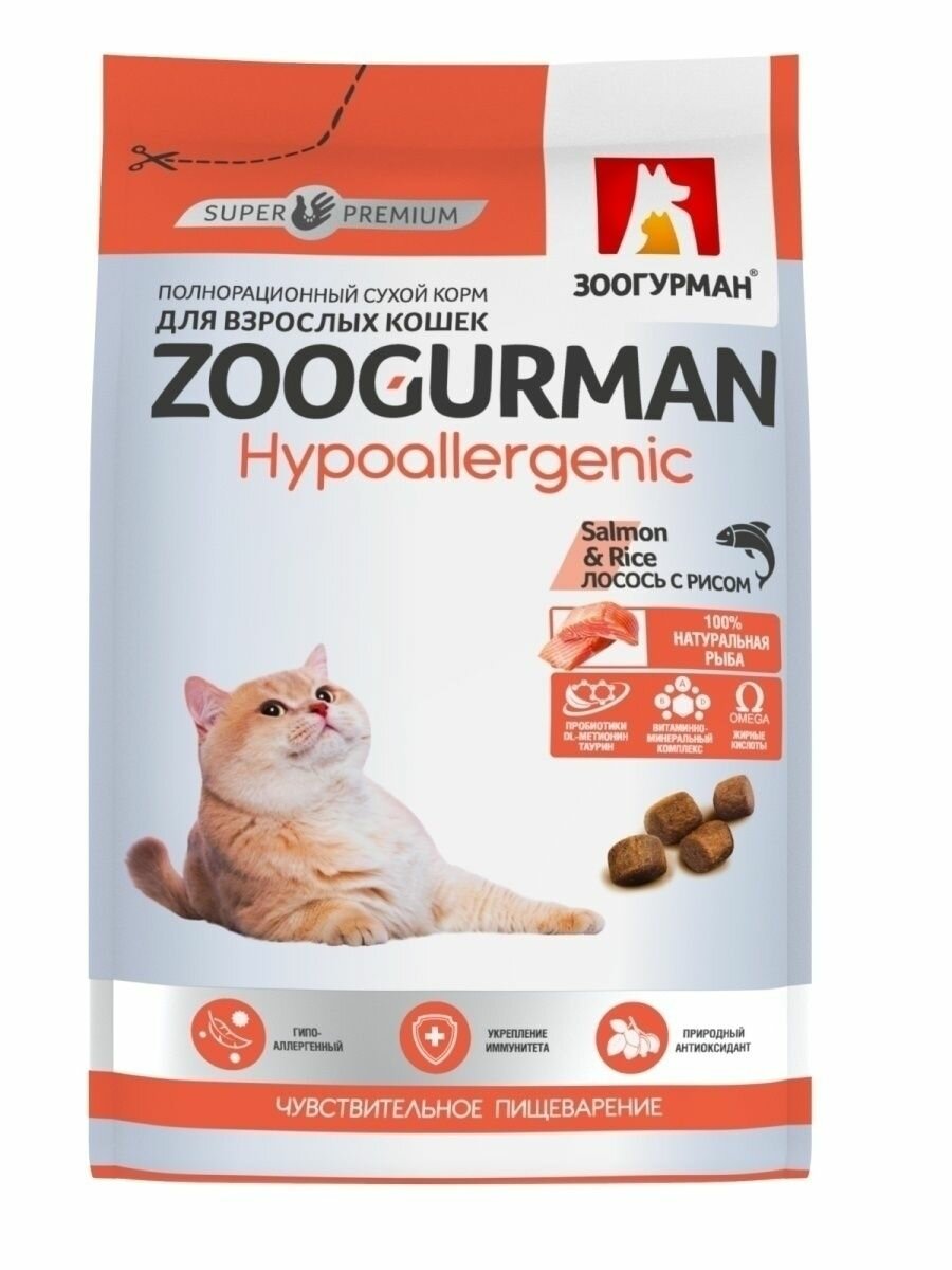 Сухой корм для кошек Зоогурман Hypoallergenic, с лососем и рисом 1,5 кг интересное: