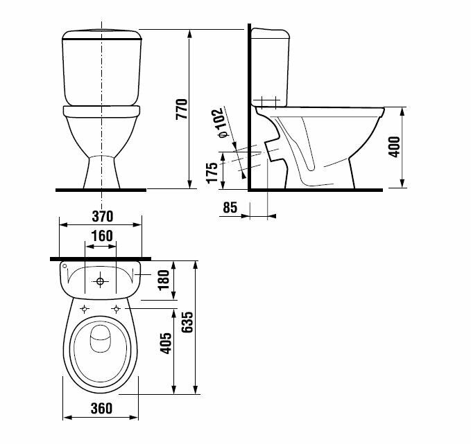 Унитаз-компакт Jika Lyrа (Dino) 37х63,5см, арт. 8242340002429, косой выпуск, нижняя подводка, без сиденья