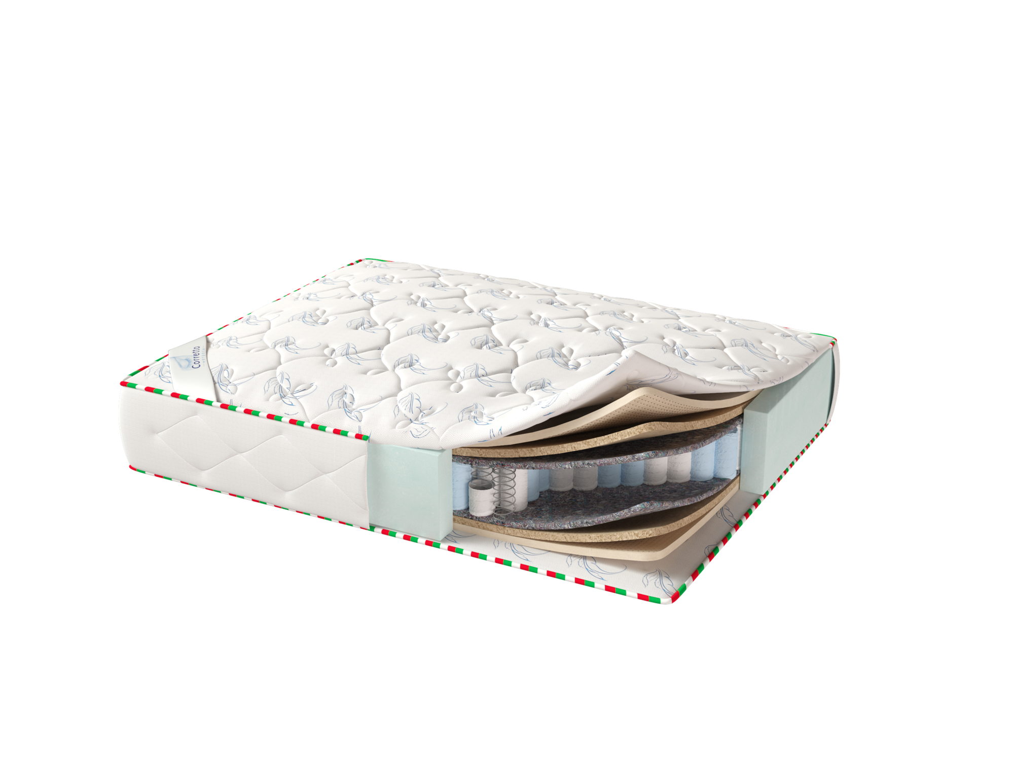 | Дополнительная информация | слои матраса: искусственный латекс 1 см, кокосовая плита 1 см, термовойлок, блок независимых пружин, термовойлок, кокосовая плита 1 см, искусственный латекс 1 см |