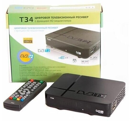 Тюнер цифровой DVB-T2 Сигнал T34 черный