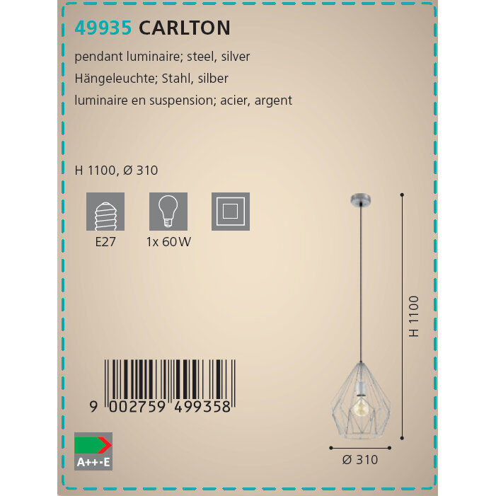 Ниже Вы можете прочитать отзывы на Подвес Eglo 49935 Carlton, ознакомится с подробными характеристиками, посмотреть интересные обзоры и фотографии на Подвес Eglo 49935 Carlton.