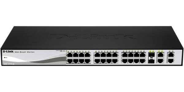 Коммутатор D-Link DES-1210-28/C1A Настраиваемый коммутатор WebSmart с 24 портами 10/100Base-TX, 2 портами 10/100/1000BASE-T, 2 комбо-портами 100/1000B