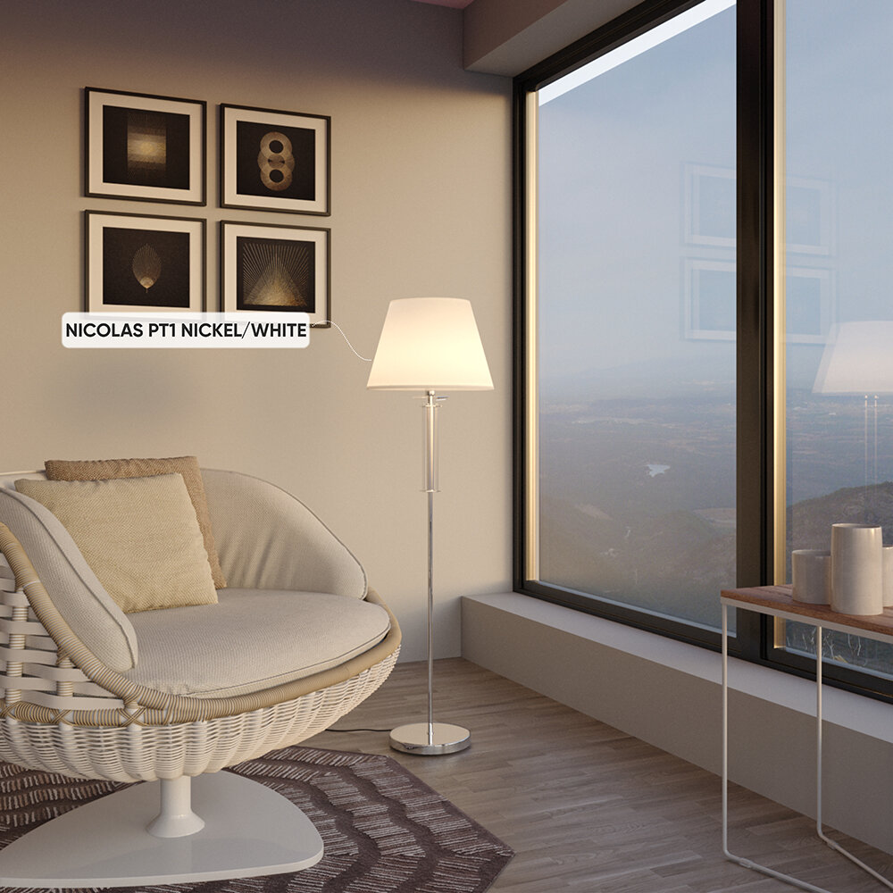 Торшер Crystal Lux Nicolas NICOLAS PT1 NICKEL/WHITE