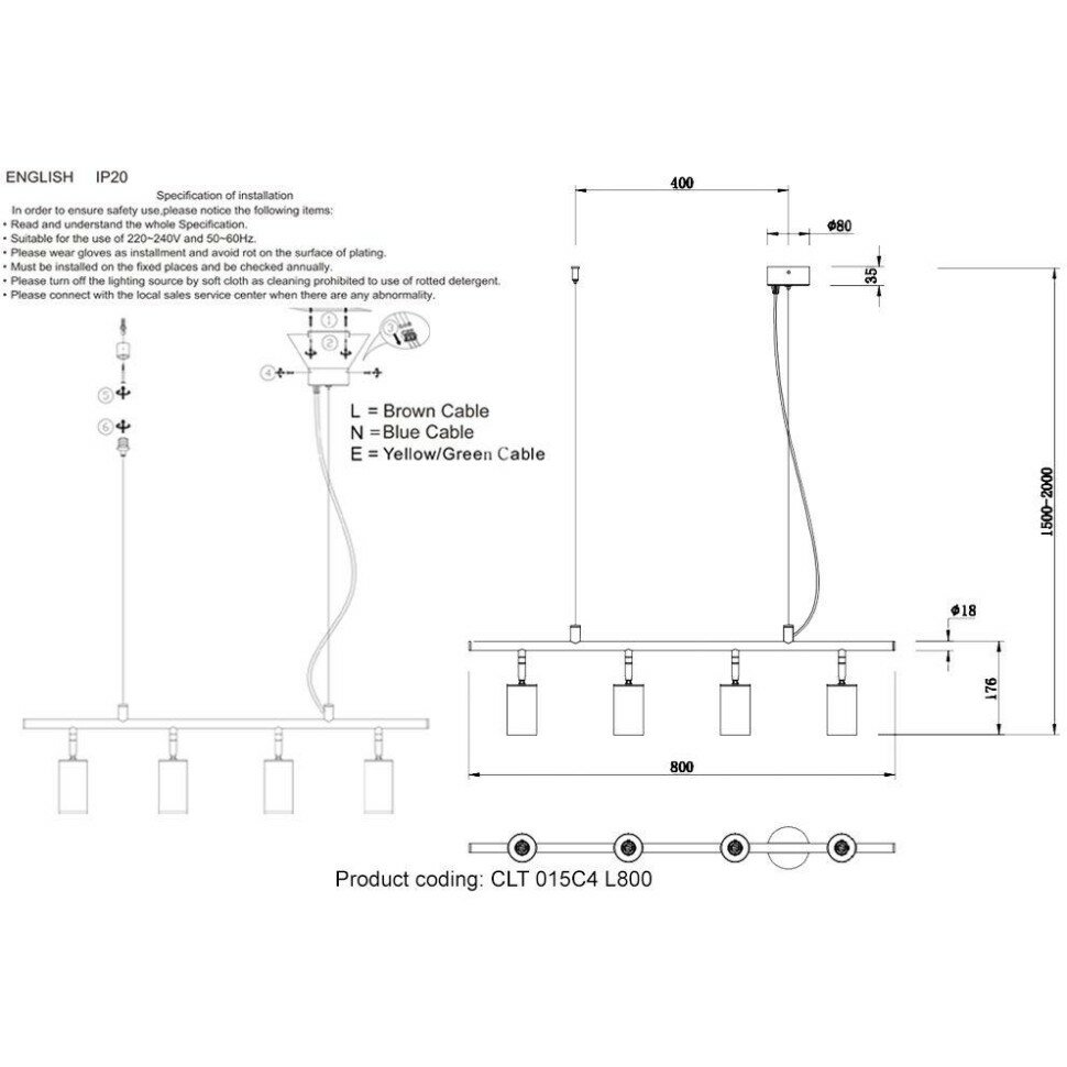 Светильник подвесной Crystal Lux CLT 015 CLT 015C4 L800 BL-GO
