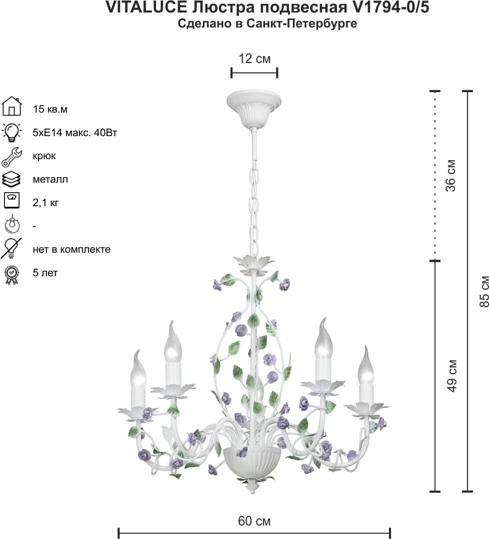 Ниже Вы можете прочитать отзывы на Люстра V1794-0/5, 5хE14 макс. 40Вт, ознакомится с подробными характеристиками, посмотреть интересные обзоры и фотографии на Люстра V1794-0/5, 5хE14 макс. 40Вт.