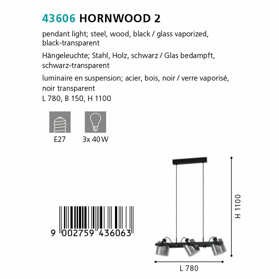 Светильник подвесной Eglo Hornwood 2 43606, Черный, E27 120