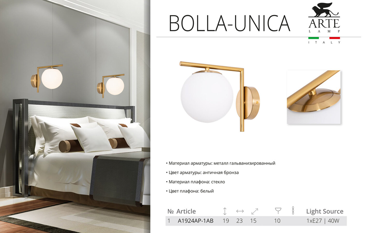 Ниже Вы можете прочитать отзывы на Бра Arte Lamp Bolla-Unica A1924AP-1AB, ознакомится с подробными характеристиками, посмотреть интересные обзоры и фотографии на Бра Arte Lamp Bolla-Unica A1924AP-1AB.
