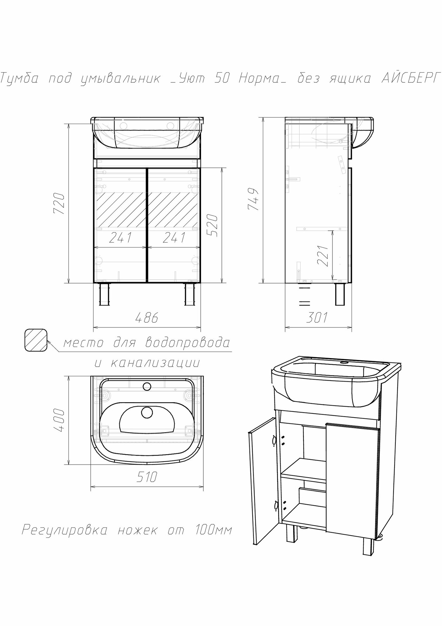 Тумба под умывальник "Уют 50 Норма" без ящика айсберг интересное: