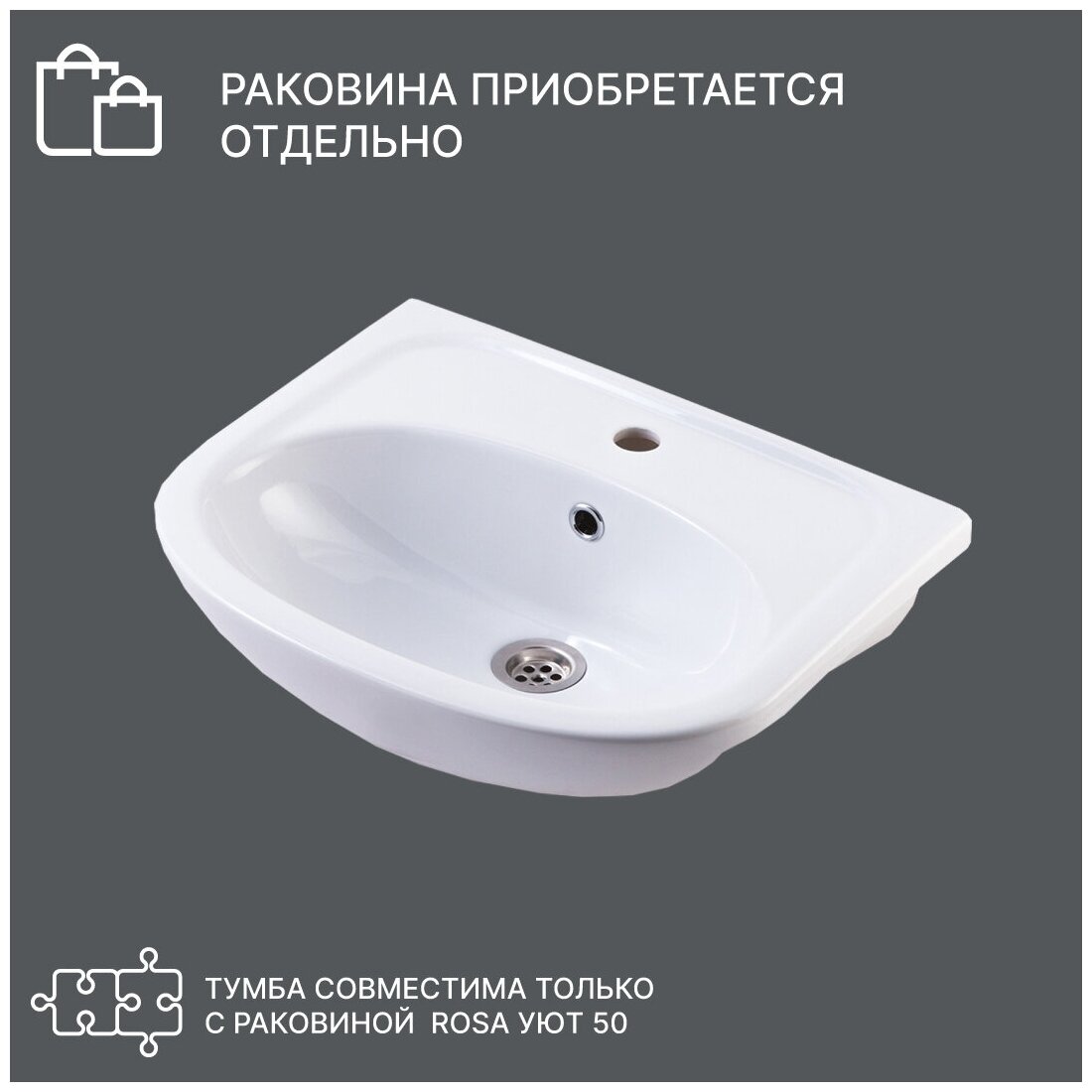 | Дополнительная информация | Рекомендуем приобрести к данной модели тумбы раковину ROSA Уют 50. На странице нашего магазина вы сможете найти другие элементы коллекции - зеркало EvaGold Rados 50. |