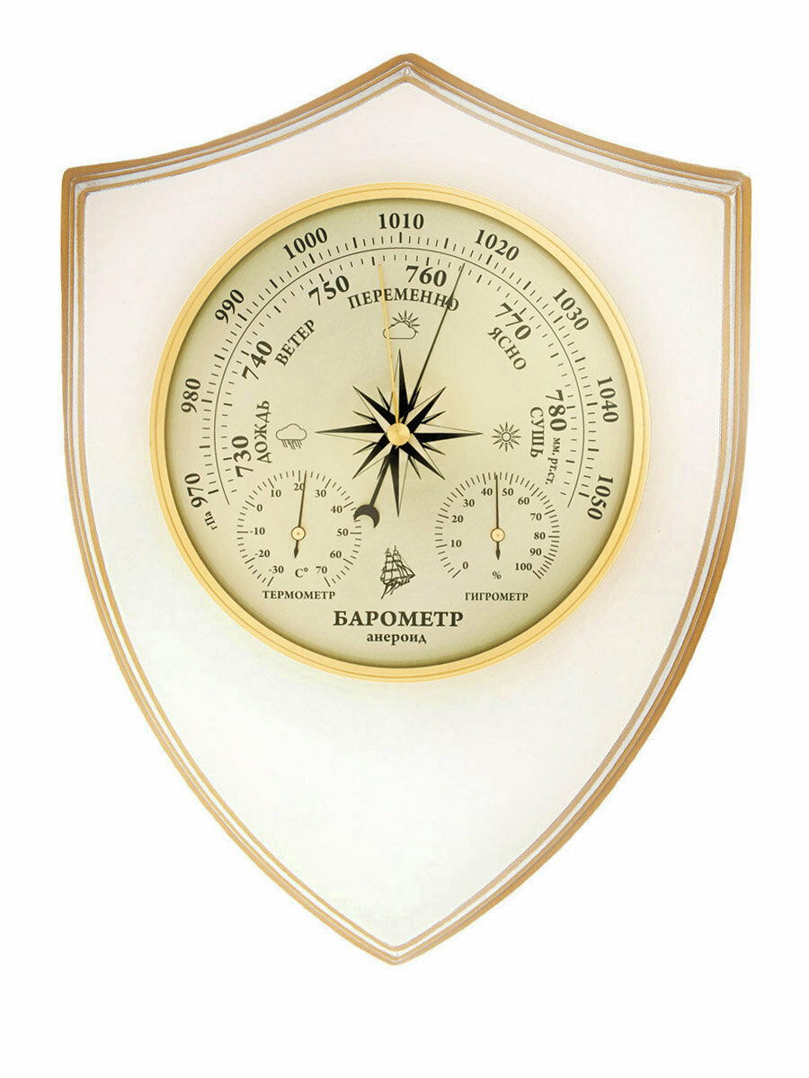Купить Метеостанция механическая бриг КМ91472ТГБ-ЭП. Для дома , белая, в деревянном корпусе, настенная. Барометр анероид, термометр, гигрометр.