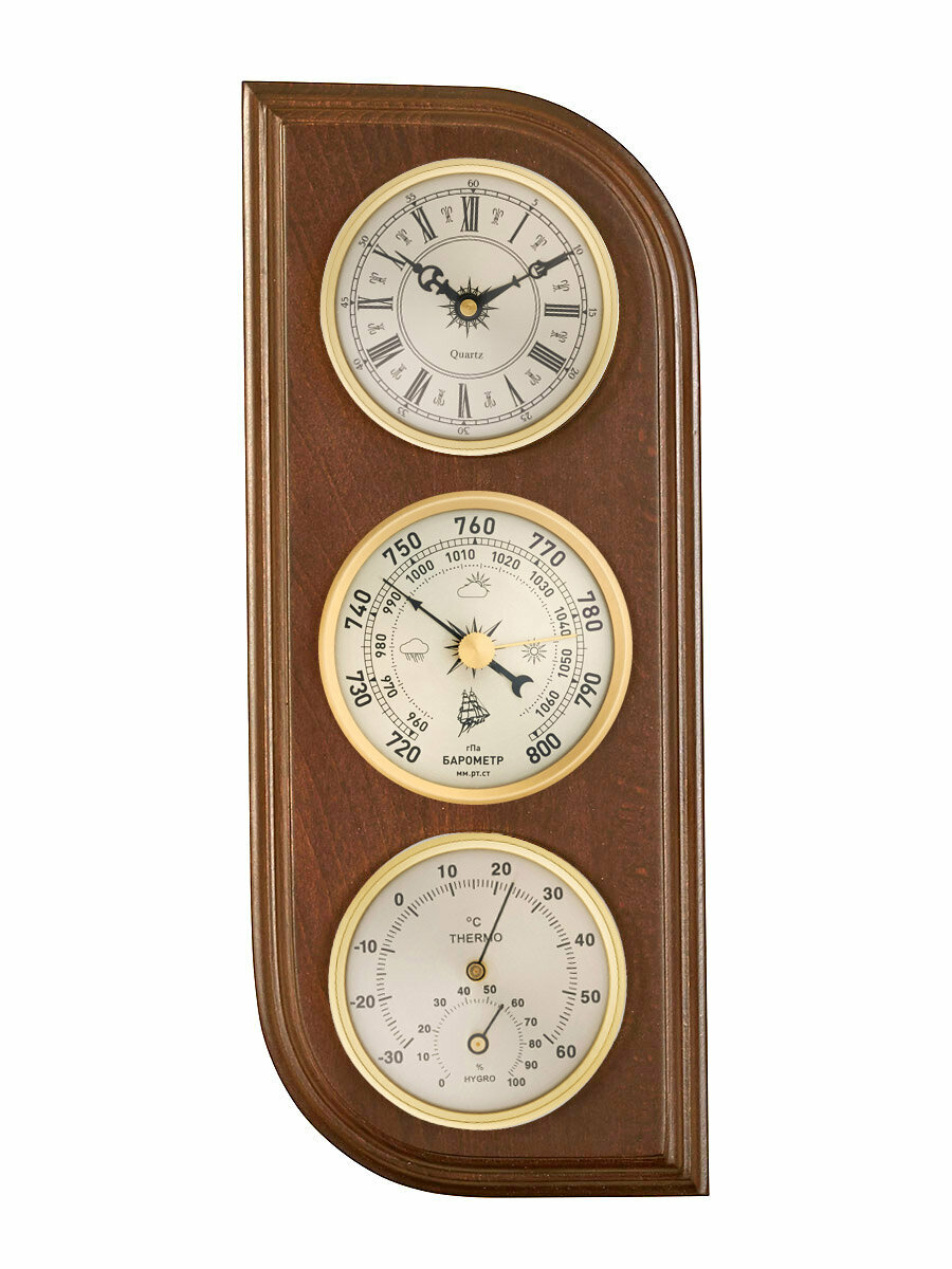 Погодная станция с часами Бриг КМ93003-ЧБ(ТГ)-О Механическая, натуральное дерево ,настенная. Цвет орех. Барометр, термометр, гигрометр интересное: