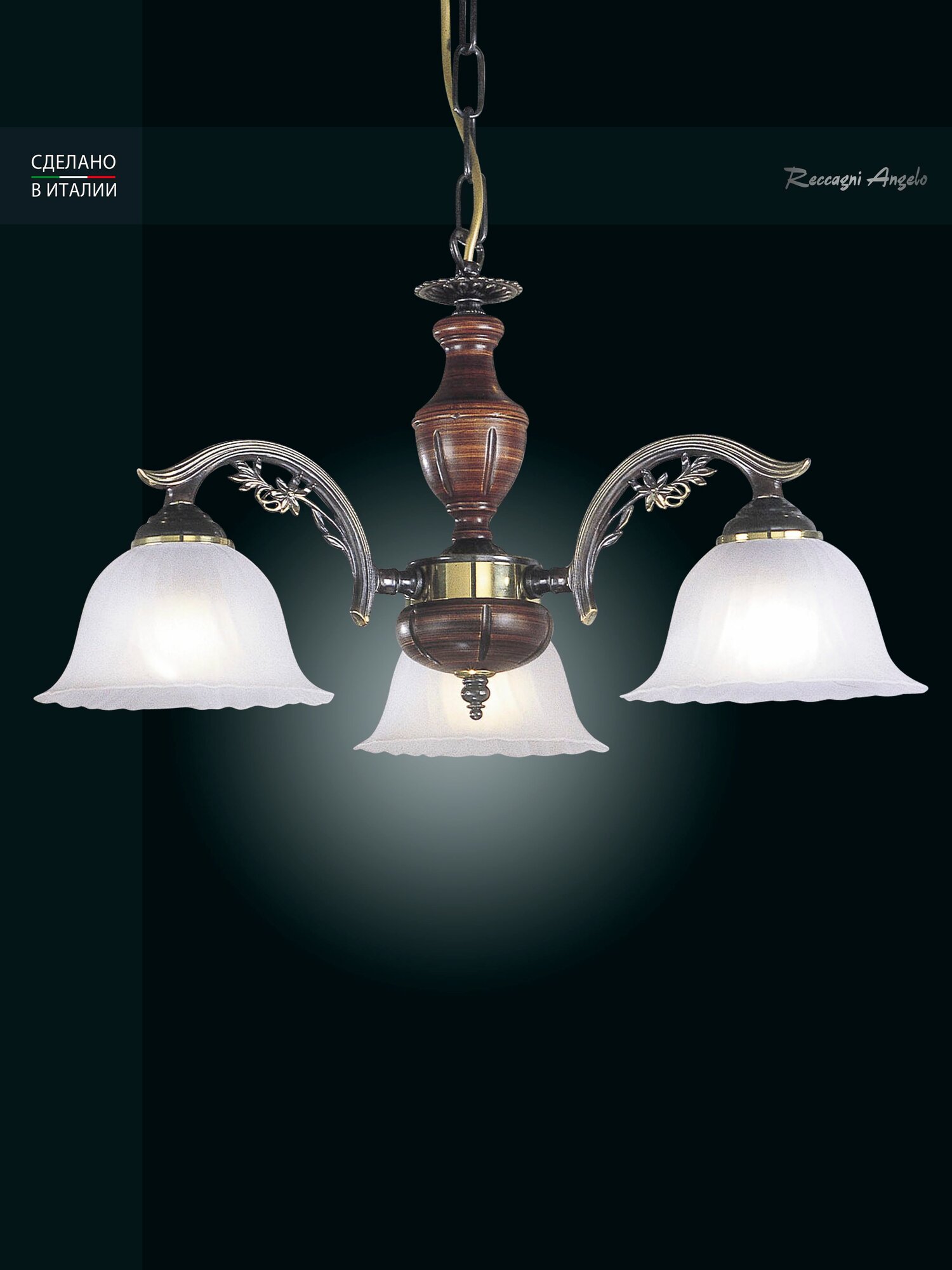 L 2700/3 Люстра подвесная Reccagni Angelo, 3 плафона, бронза, дерево