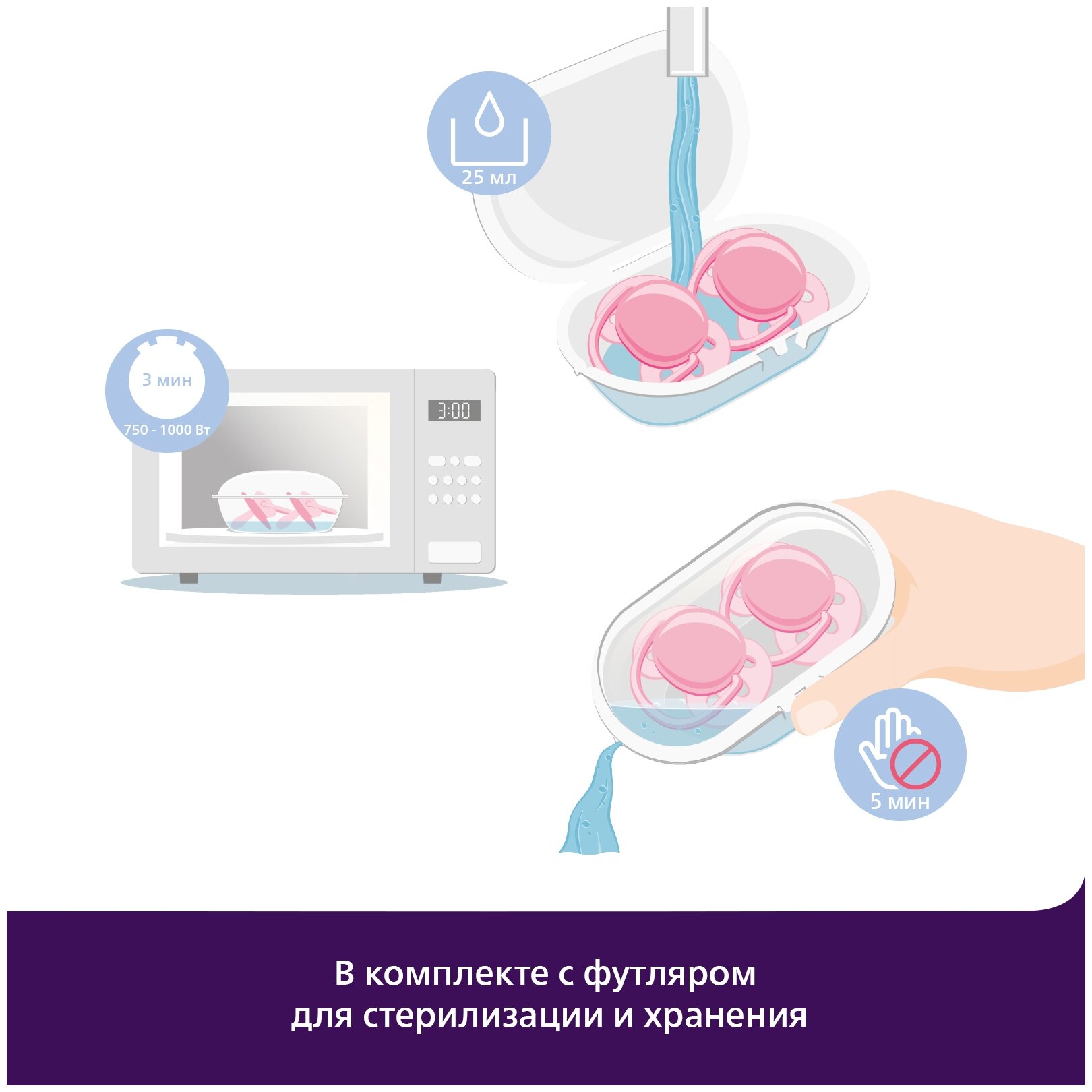| Комплектация | пустышка ultra soft - 2 шт., футляр для стерилизации/хранения |