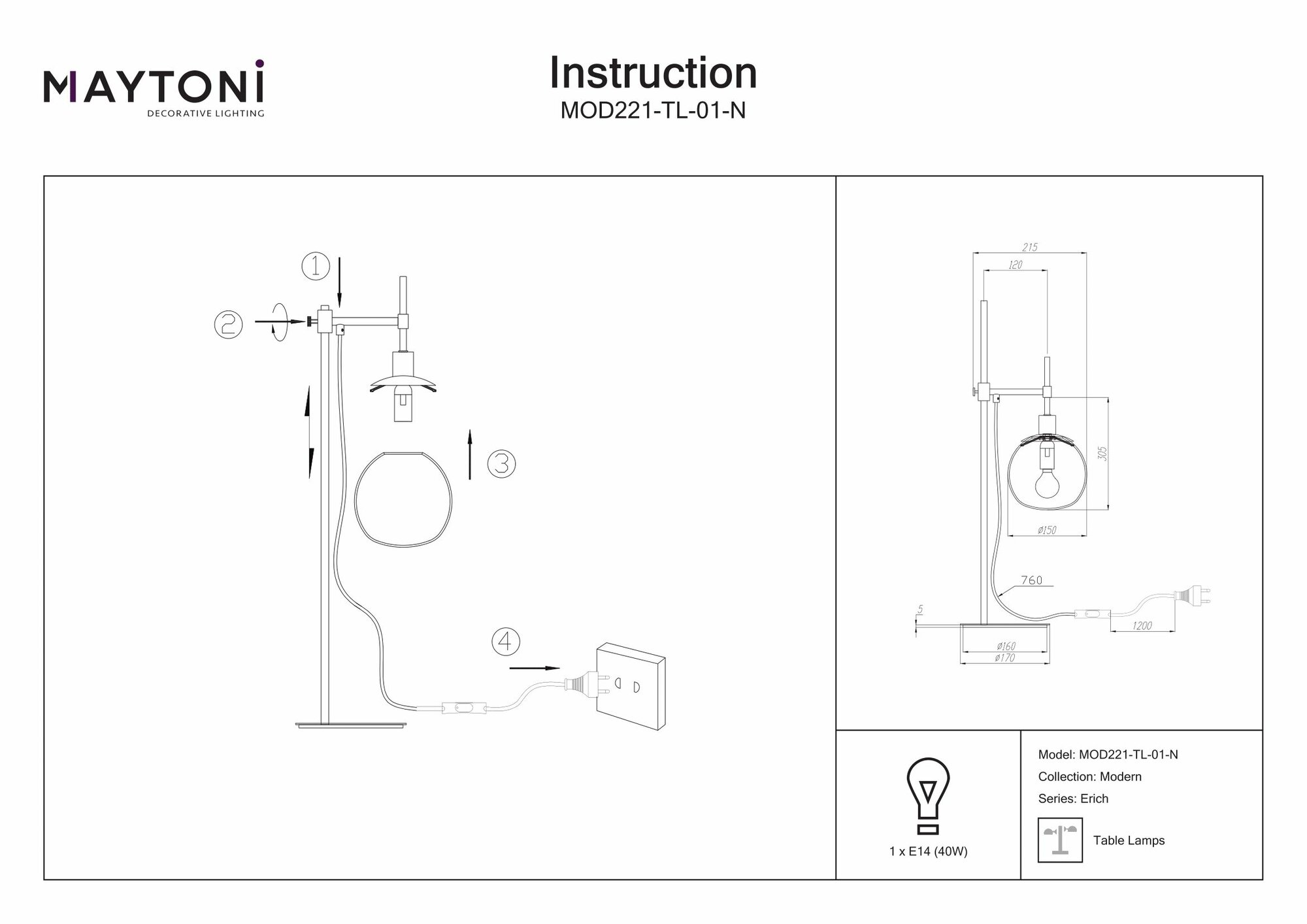 Настольная лампа Maytoni Erich MOD221-TL-01-N интересное: