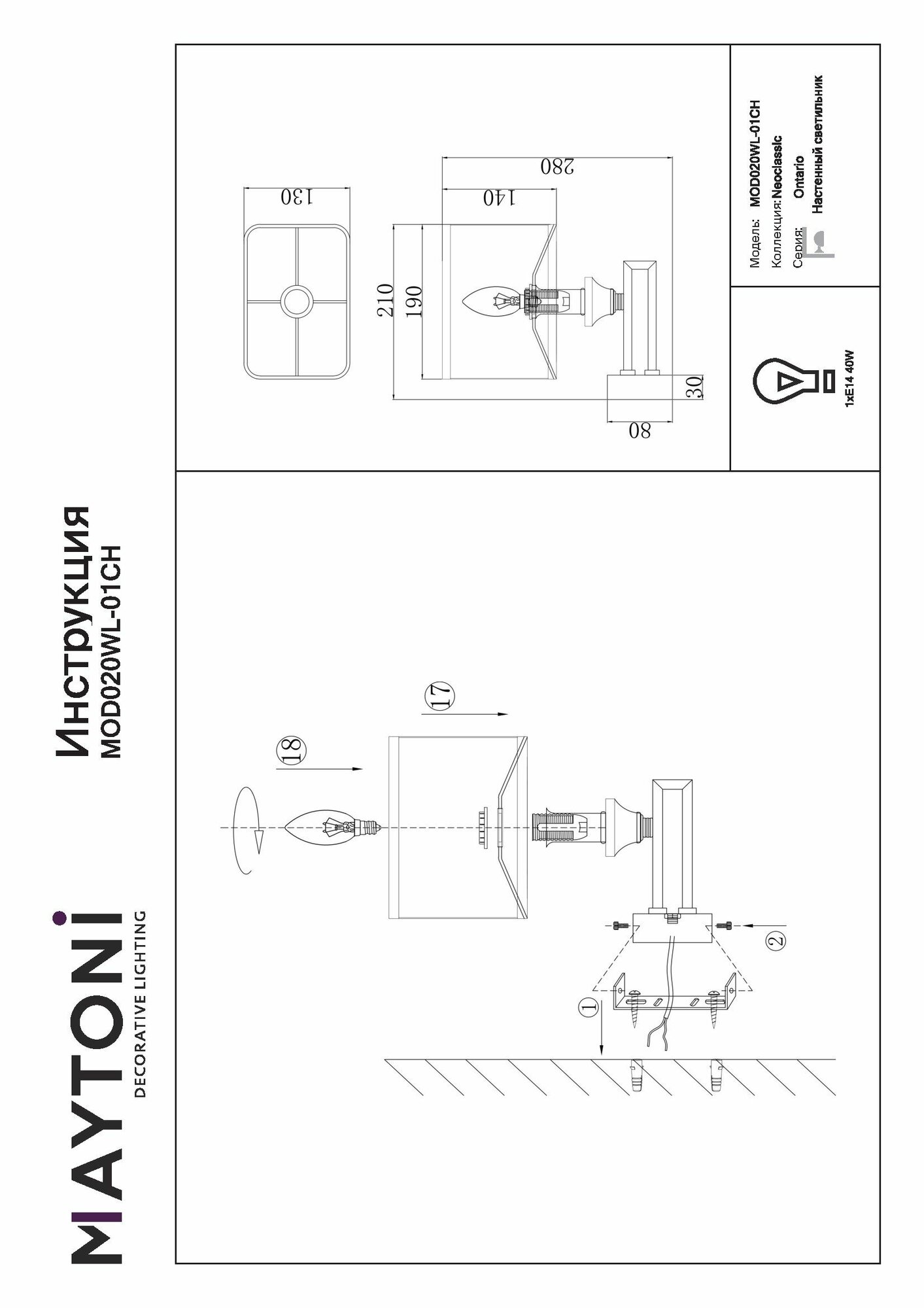 Бра Maytoni Ontario MOD020WL-01CH интересное: