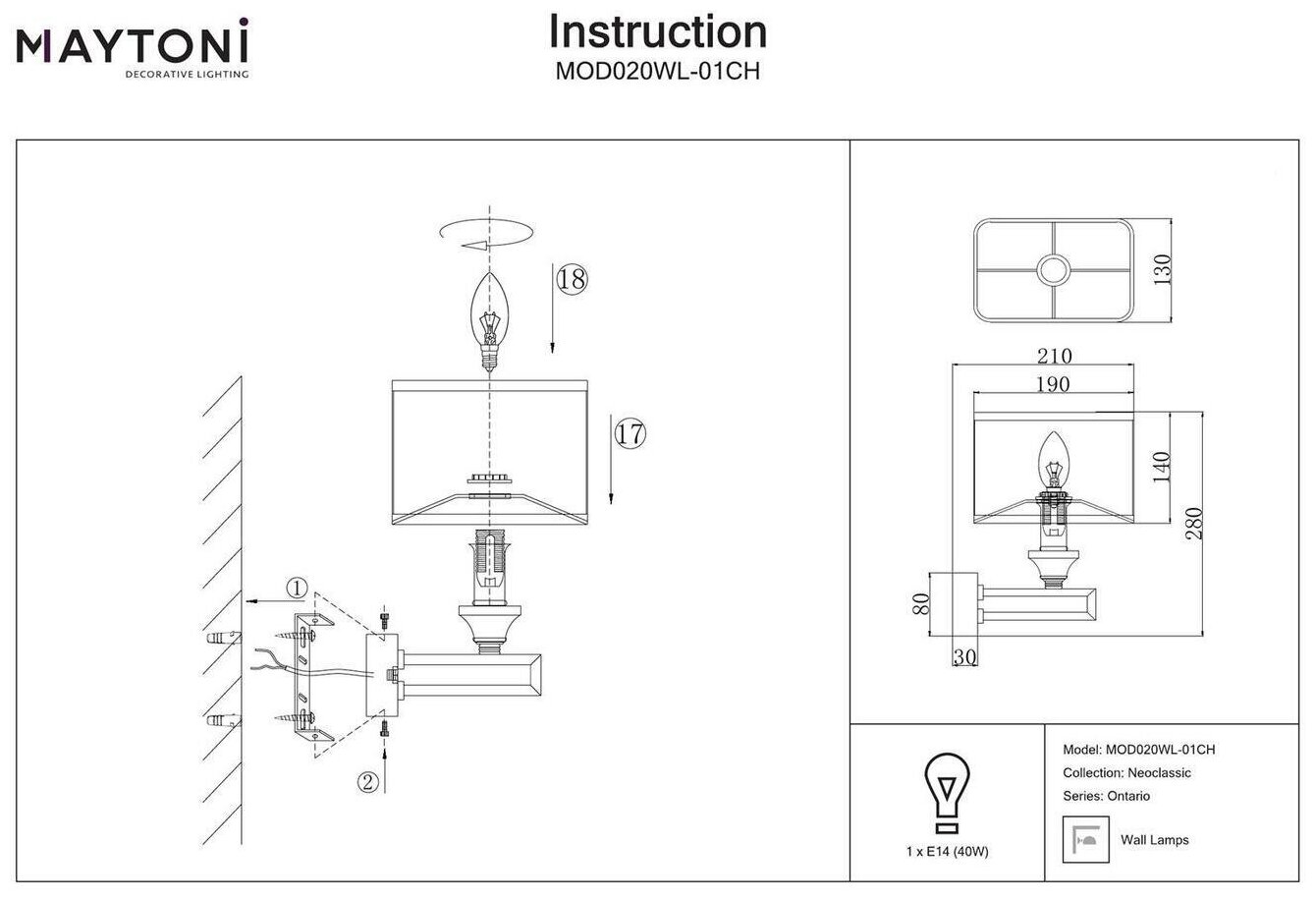 Настенное бра Maytoni Ontario MOD020WL-01CH интересное: